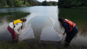 2025 NOAA Informe de Educación Amy y Nyrobi haciendo un sena de playa en su sitio de investigación, Trena Lake. Sus proyectos de prácticas de verano fueron cada uno sobre la ecología única del lago Trena, un lago de agua dulce convertido en laguna de marea situada en Seldovia, AK. (Crédito de imagen: Amy Deatherage) Descargar Imagen Una joven explora piscinas de marea en una reserva marina fuera de la Universidad de California, San..